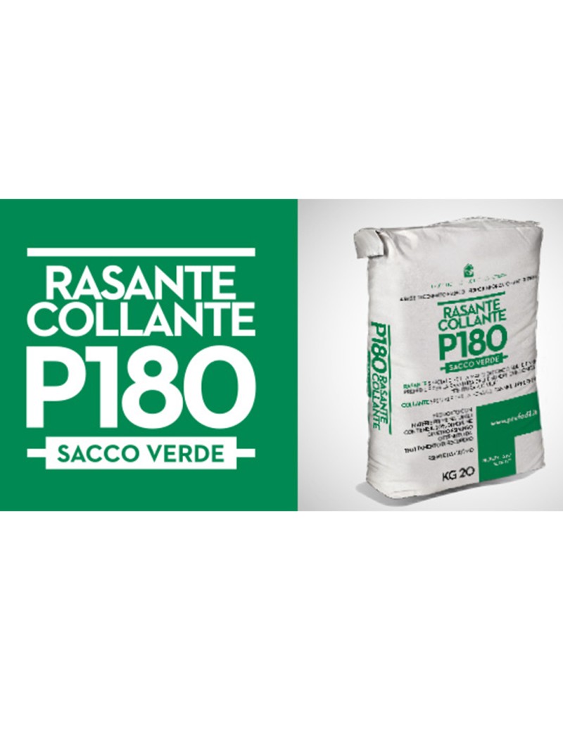 P180 è di colore bianco ed è a base di cementi ad alta resistenza meccanica, inerti silicei, polvere di marmo purissima, microsfere di vetro riciclato espanso e speciali resine sintetiche. A fine vita il prodotto è riciclabile quale inerte. La sua speciale formula con perline di vetro rende il P180 di facile applicazione, scorrevole e le fibre lo rendono resistente specialmente sui pannelli PREFEDIL che non necessitano di intonaco di finitura. Con una mano di applicazione copre spessori da 1 mm a 15 mm, non cola. Dopo la prima mano, a fresco, si può procedere alla finitura "a civile" con il frattazzo a spugna. Può essere utilizzato per il montaggio dei pannelli PREFEDIL e per l'applicazione, diretta sulle pareti grezze dei rivestimenti ceramici. Sopra le superfici rasate con il P180 si può applicare il P190 per ottenere una superficie liscia.
