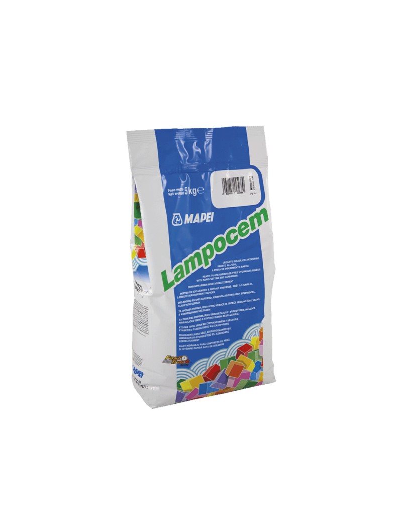 Legante idraulico antiritiro pronto all’uso, a presa ed indurimento rapidi. DATI TECNICI: Dimensione massima dell’aggregato: < 0,1 mm. Rapporto dell’impasto: 100 parti di LAMPOCEM con 20-21 parti di acqua. Durata dell’impasto: circa 1 min. (a +23°C). Immagazzinaggio: 12 mesi. Applicazione: cazzuola o spatola. Consumo: 1,8 kg/dm³ di cavità da riempire. Confezioni: sacchi da 25 kg