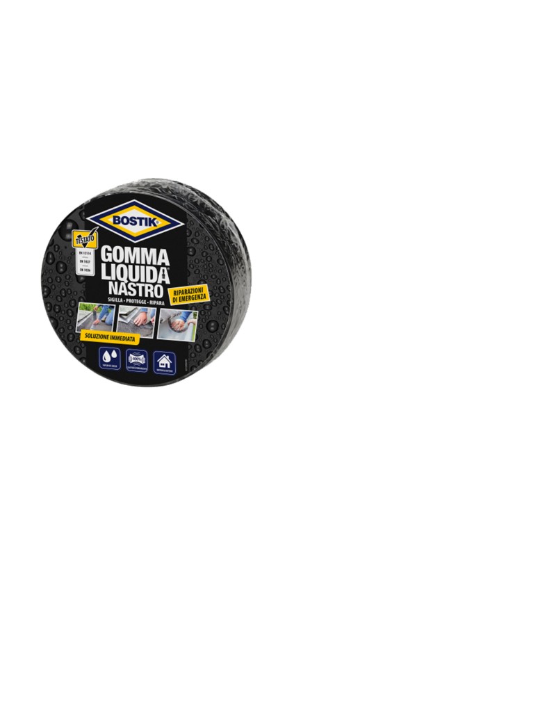 Descrizione prodotto Bostik Gomma Liquida® Nastro è particolarmente adatto per le riparazioni (di emergenza). Il nastro è immediatamente impermeabile all’acqua e all’aria, pertanto non è necessario attendere. Il nastro possiede un alto potere adesivo e aderisce persino su superfici umide.