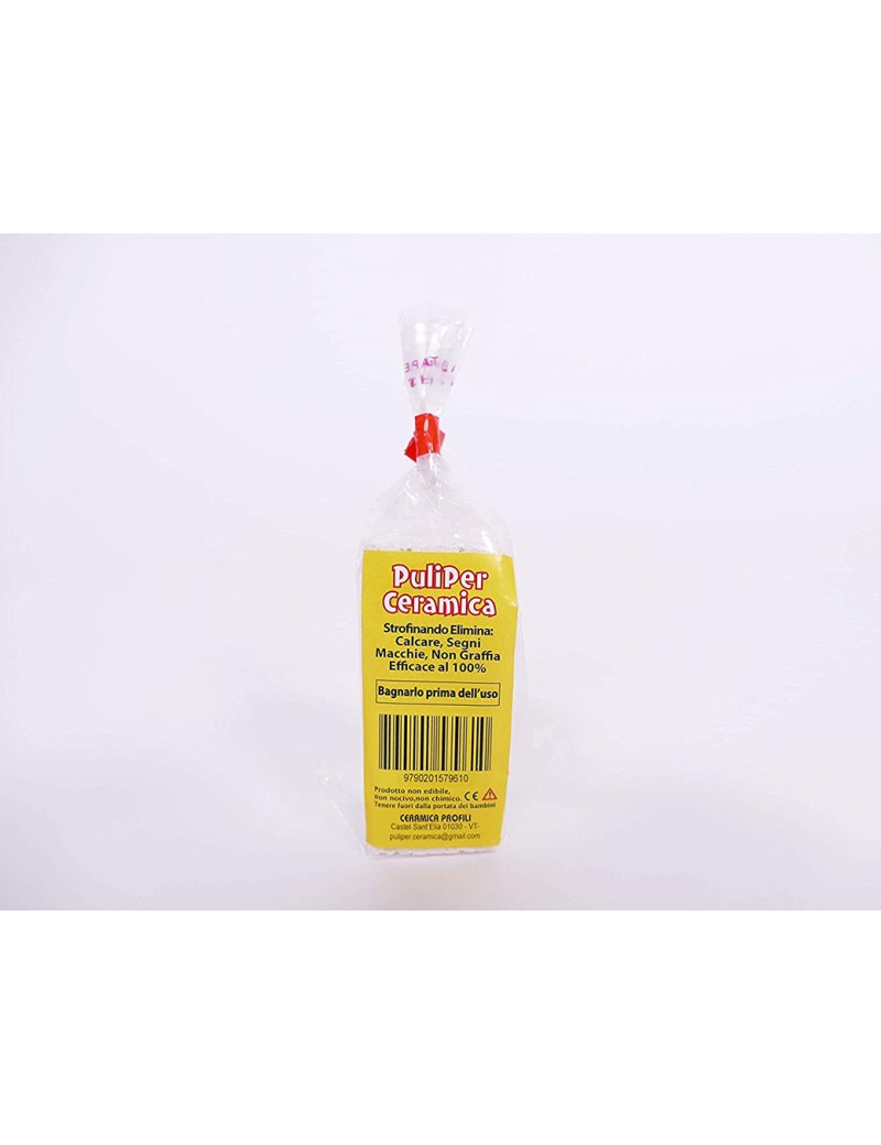 IN CONFEZIONE ESPOSITORE 25PZ il puliper è un prodotto brevettato che viene usato per la pulizia della ceramica in genere. stronfinando non graffia, ed agisce sul calcare, silicone, alluminio, ferro ed ogni tipo di macchia presente su ongi tipo di ceramica . il uliper ceramica viene usato per la pulizia dei sanitare e dei rivestimenti in ceramica di qualsiasi taglio e misura.