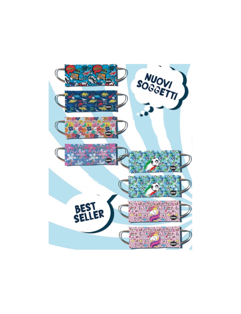Mascherina per bambini lavabile con stampa a scelta. 1 pz per confezione Traspirante, soffice, con interno in cotone. Made in italy.