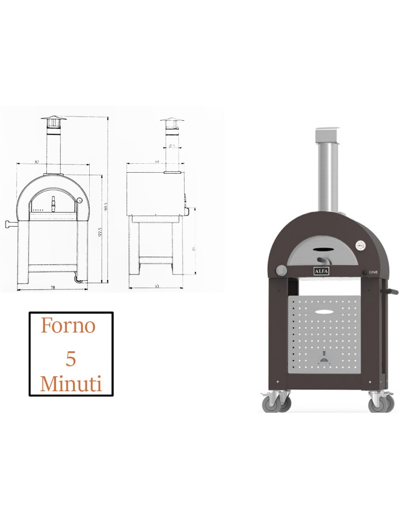 Il 5 minuti è un forno componibile poggiato sul proprio carrello dotato di maniglione laterale per essere spostato o trasportato con facilità e leggerezza.