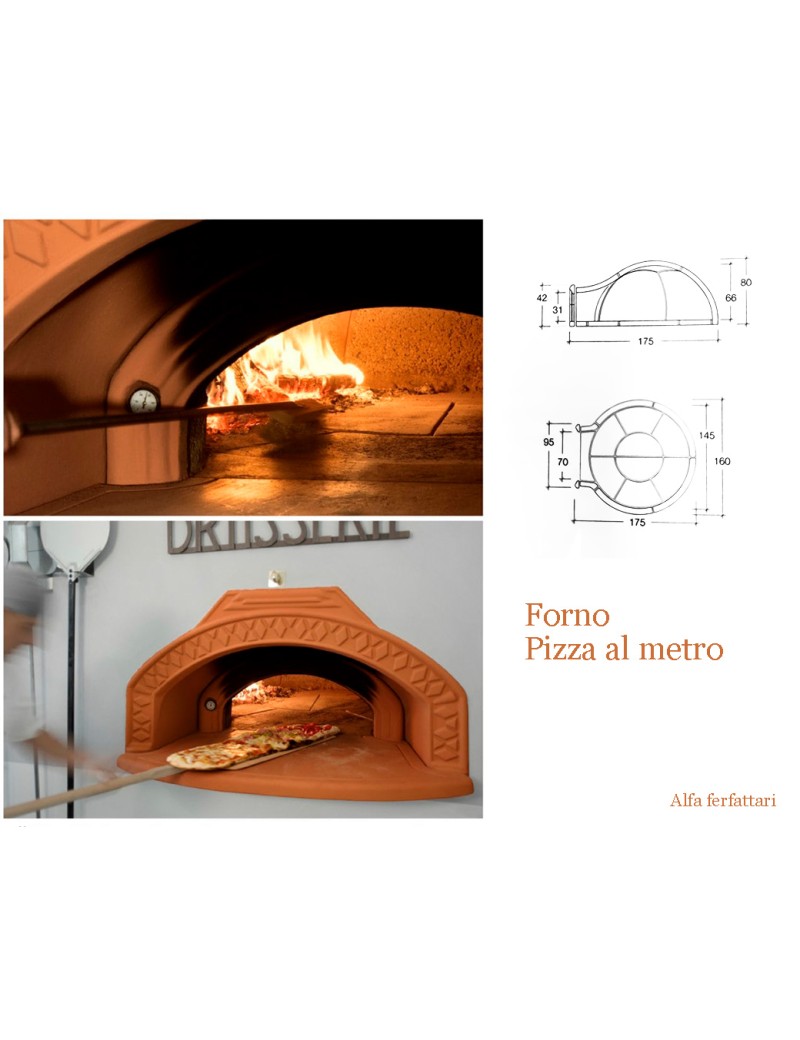 La cupola dalla forma perfettamente sferica accoglie ed accompagna la fiamma dolcemente verso la canna fumaria dopo aver ben irradato il piano e garantito un riscaldamento uniforme della camera di cottura. Un ora per rendere il forno pronto all'uso Peso 680kg Lunghezza 175 larghezza 160 Misura interna area del fuoco 1,80mq