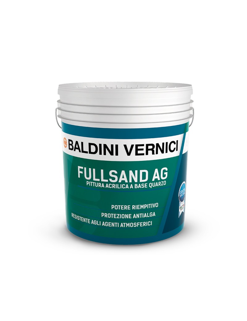 FULLSAND AG Pittura acrilica a base quarzo Fullsand AG è una pittura acrilica riempitiva a base di farina di quarzo, ideale per applicazioni su superfici murali esterne. Fullsand AG contiene speciali preservanti del film, che conferiscono alla pittura una protezione preventiva dalla formazione di muffe ed alghe.